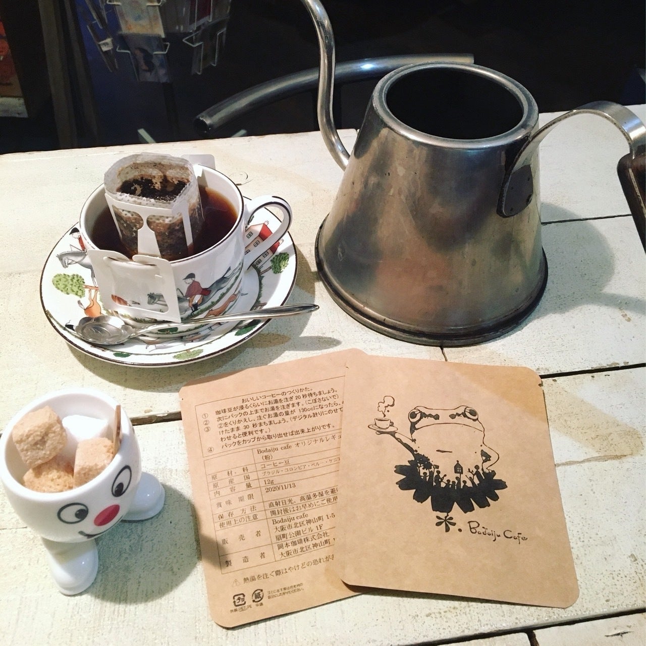 そんな方に向けて、現在は大阪平野区で営業されている「ボダイジュカフェ」さんの協力をえて、ドリップコーヒー10杯+ファーストディナーマグカップをセットにしてお届けいたします。