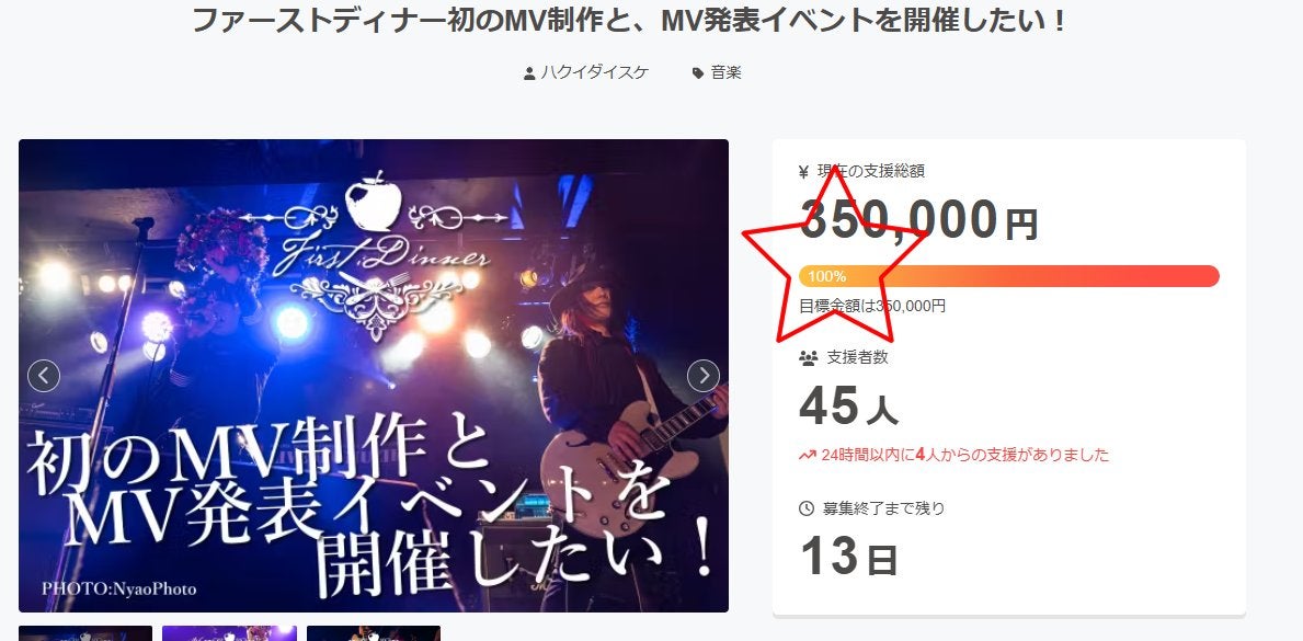 本日7月18日11:30、目標の350,000円達成しました!