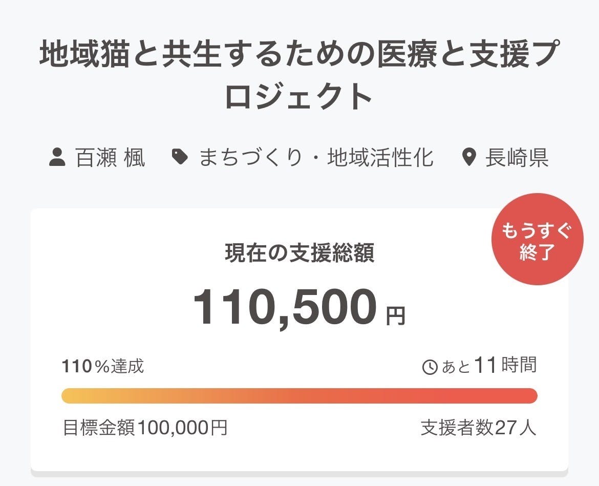 猫たちのためのクラファン残り11時間で終了、今日が最終日です。最後まで見守っていただけたら嬉しいです。どうか応援よろしくお願いします