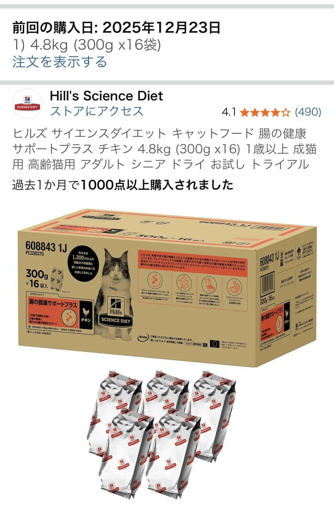 ヒルズ サイエンスダイエット キャットフード 腸の健康サポートプラス チキン 4.8kg (300g x16) 1歳以上 成猫用 高齢猫用