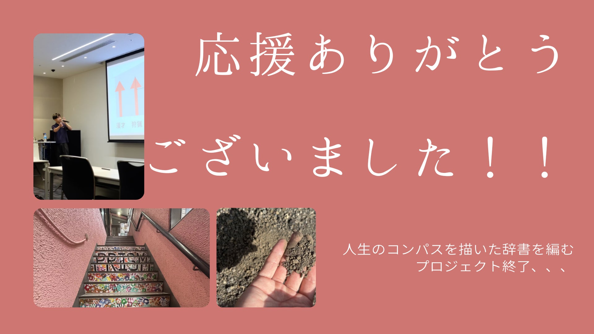 2025/10/06 22:27ここからはじまります!「人生のコンパスを描いた辞書を編む」クラウドファンディングの募集期間が終了いたしました!ご支援いただいた方、本当にありがとうございました。5名の方々から合計14,500円のご支援をいただきました。また、お気に入り登録をしてくださった方や、シェアなどご協力してくださった方、本当にありがとうございます。ご支援をいただいた方には、メッセージをお送りさせていただいたので読んでいただけますと幸いです。ここから、実際に多様な生き方を知るためのインタビューが本格的に始まっていきます。引き続き、あたたかく見守っていただけますと幸いです。どうぞよろしくお願いいたします。 もっと見る