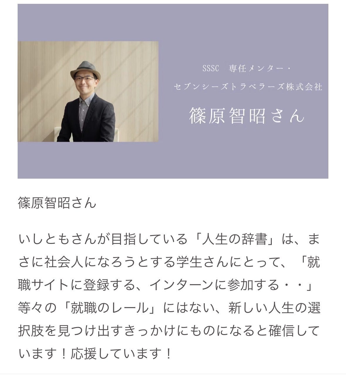 メンターの篠原さんから応援コメントをいただきました!