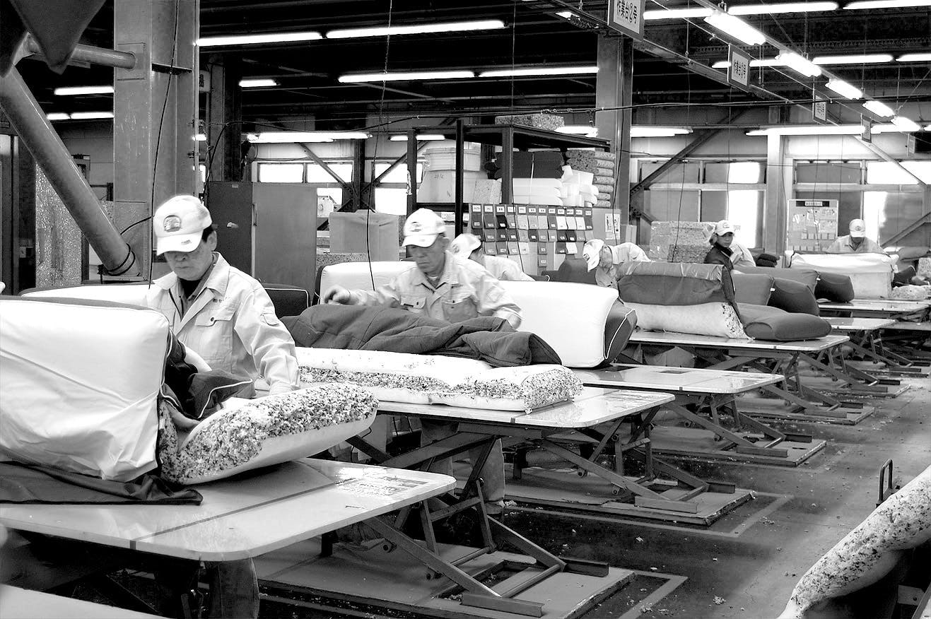 ウレタンの二次加工やリサイクル製品を製造し、その技術を活かして手作りでソファを生産しています。