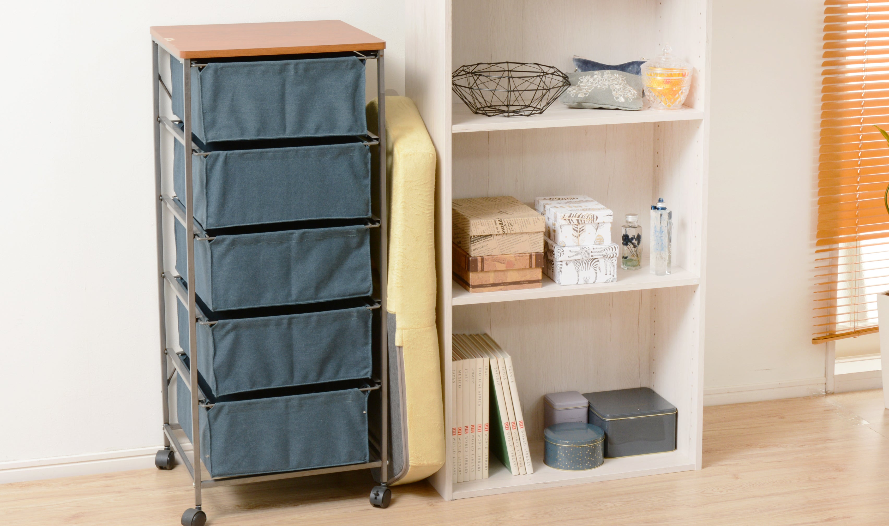 フラットにしたら棚と棚の間にもすっぽり収まりますので、場所を取らずスッキリ収納できます。
