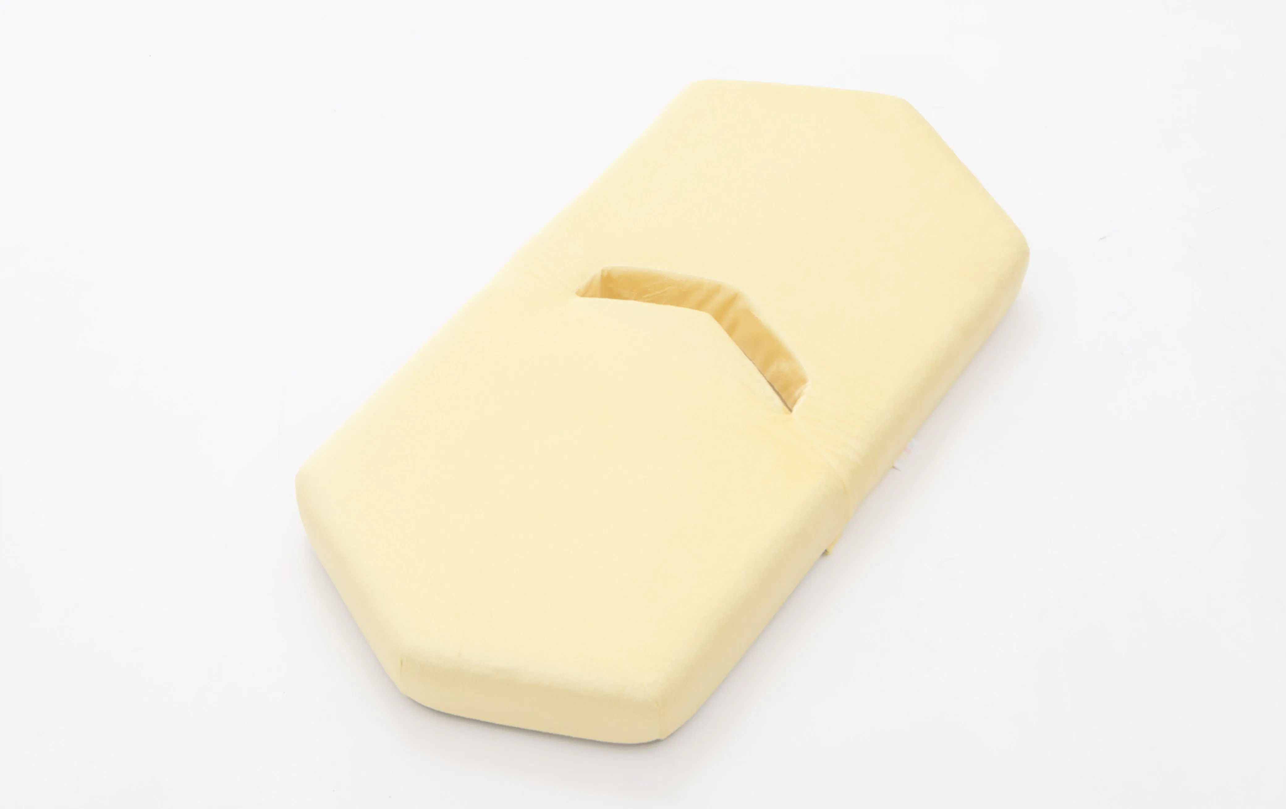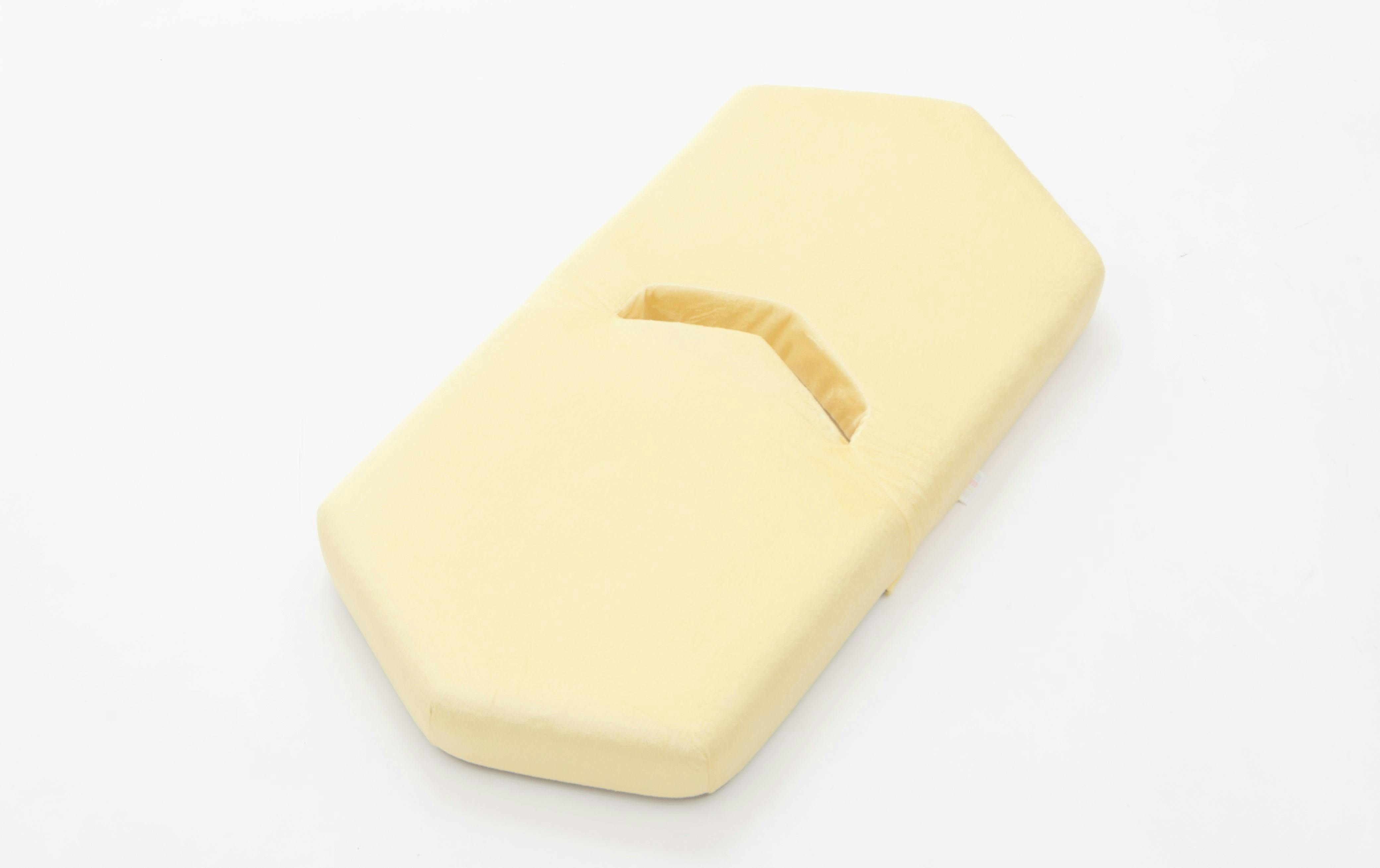 六角形のフォルムが美しく出るよう縫製にこだわり、成型されたウレタンの六角形のカタチを崩さないよう、たるみや余りがほとんど出ない設計で作りました。