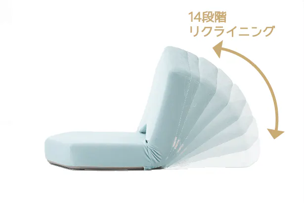 14段階リクライニングで国産ギアのKOYO製を使用しています。