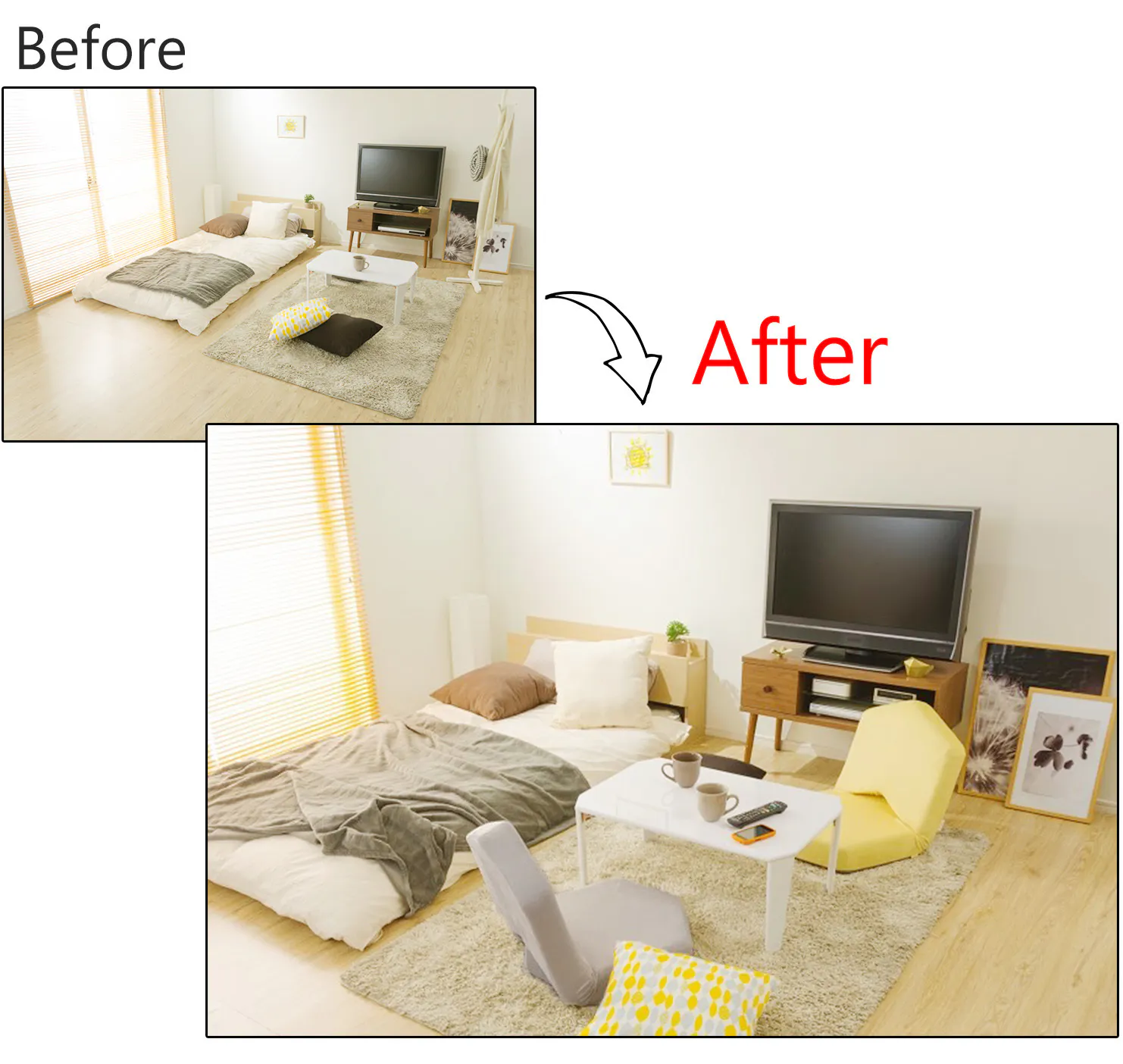 METOを置くことで部屋にアクセントが加わり、部屋の印象が変わります。