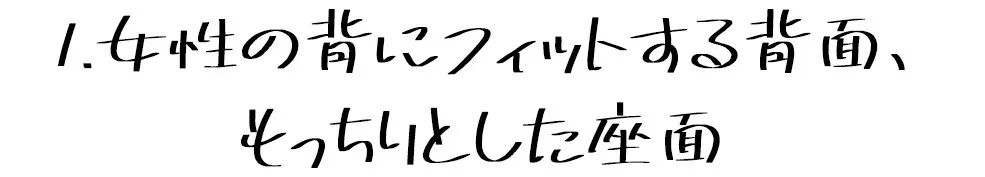 女性の身体に合う形を研究し、試作を重ね、 背面全体が背中を緩やかに包むような形にすることで、リラックスして座れる形状を生み出しました。