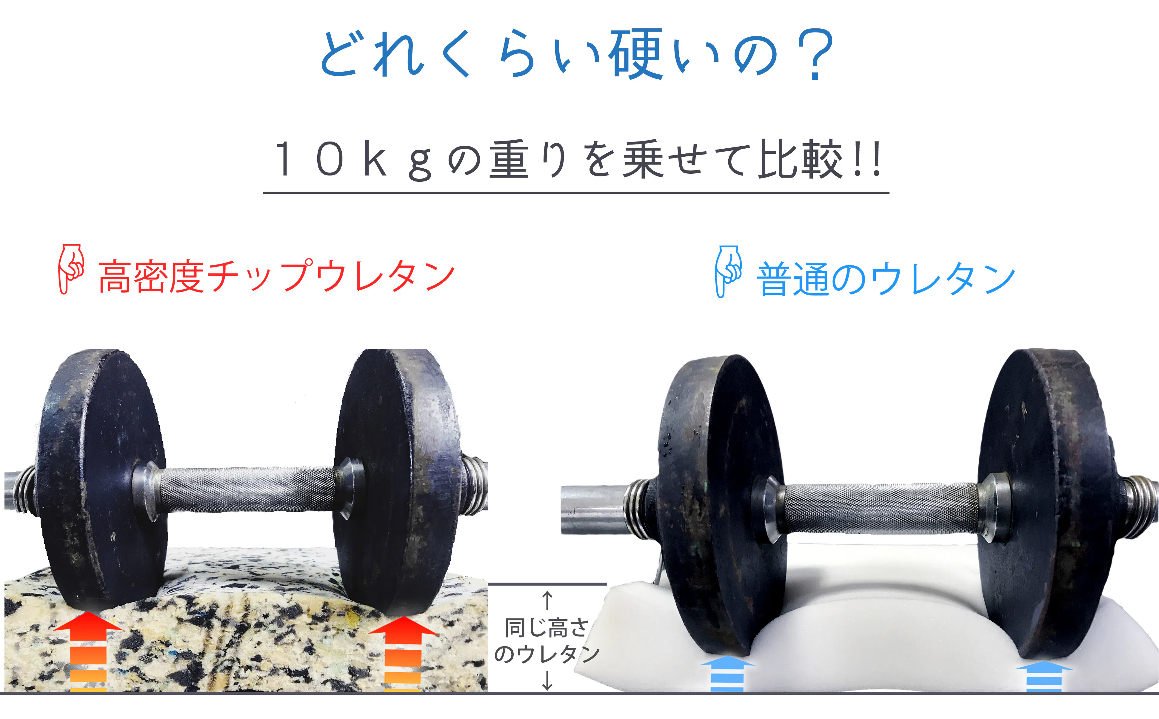 それは、チップウレタンは様々な硬度のチップを混ぜることで、耐久性が高くなっているためです。