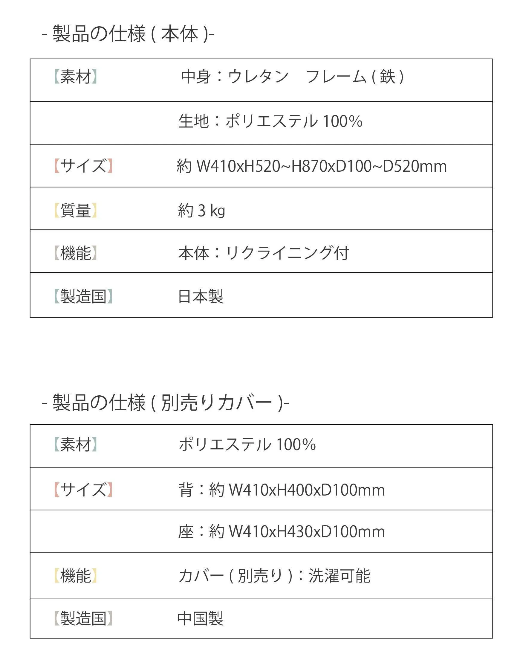 また洗濯用のカバーリングとして1セット(背面&座面)あると汚れても安心です。