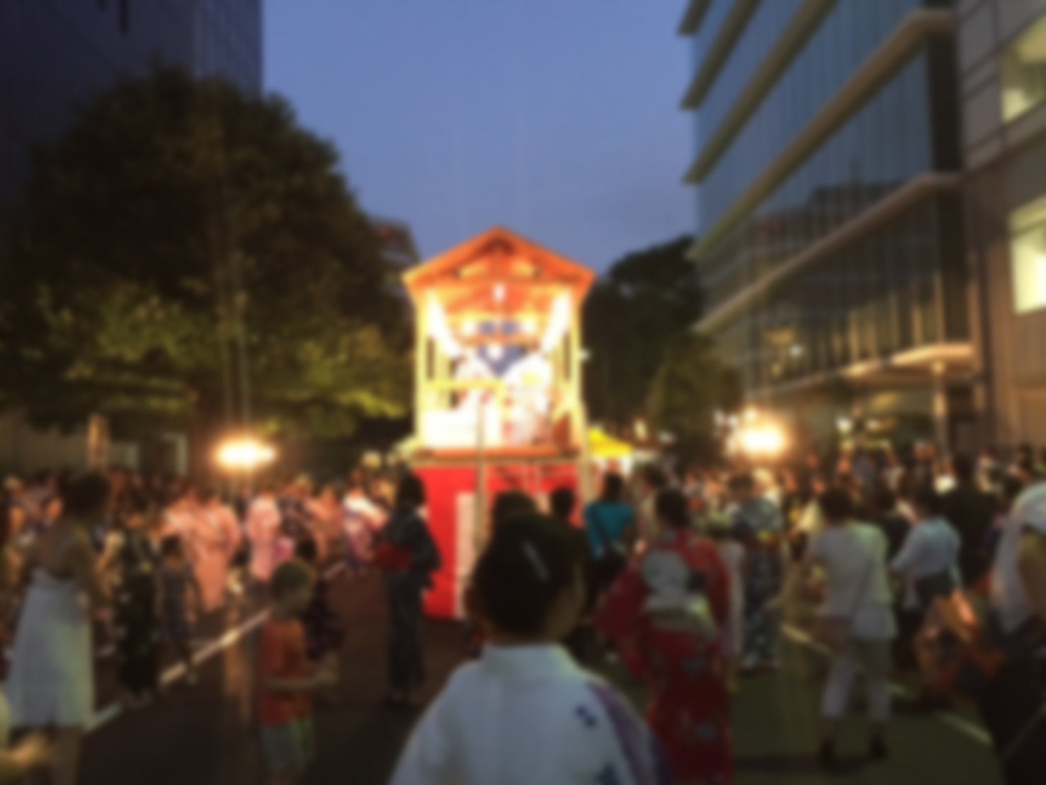 夜風、提灯の明かり、太鼓の音。 都会の中に突然あらわれる“非日常”。 よく考えたら、みんなで輪になって、櫓の周りを回り続け踊る光景ってすごく不思議で面白いんです。