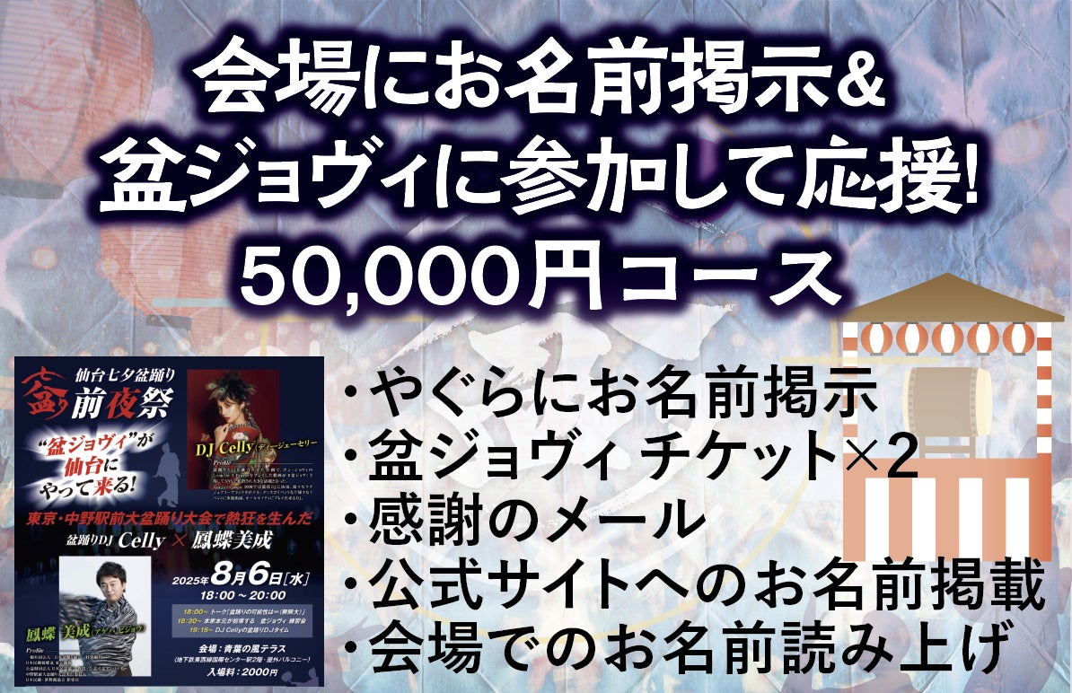 【会場にお名前掲示&盆ジョヴィに参加して応援!50,000円コース】