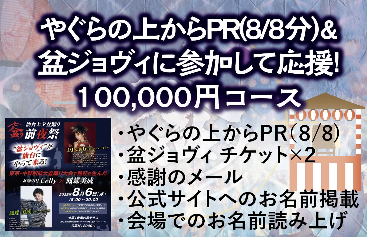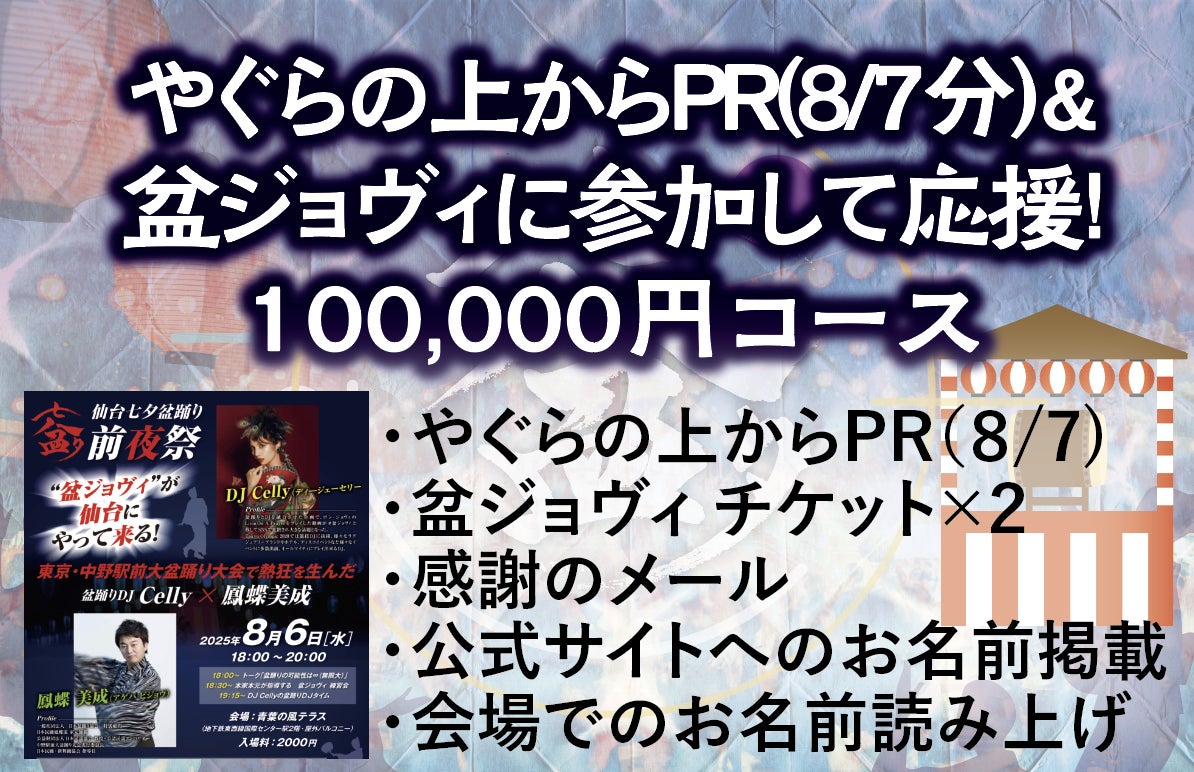 【やぐらから来場者の皆様にPR(8/7分)&盆ジョヴィに参加して応援!100,000円コース 】