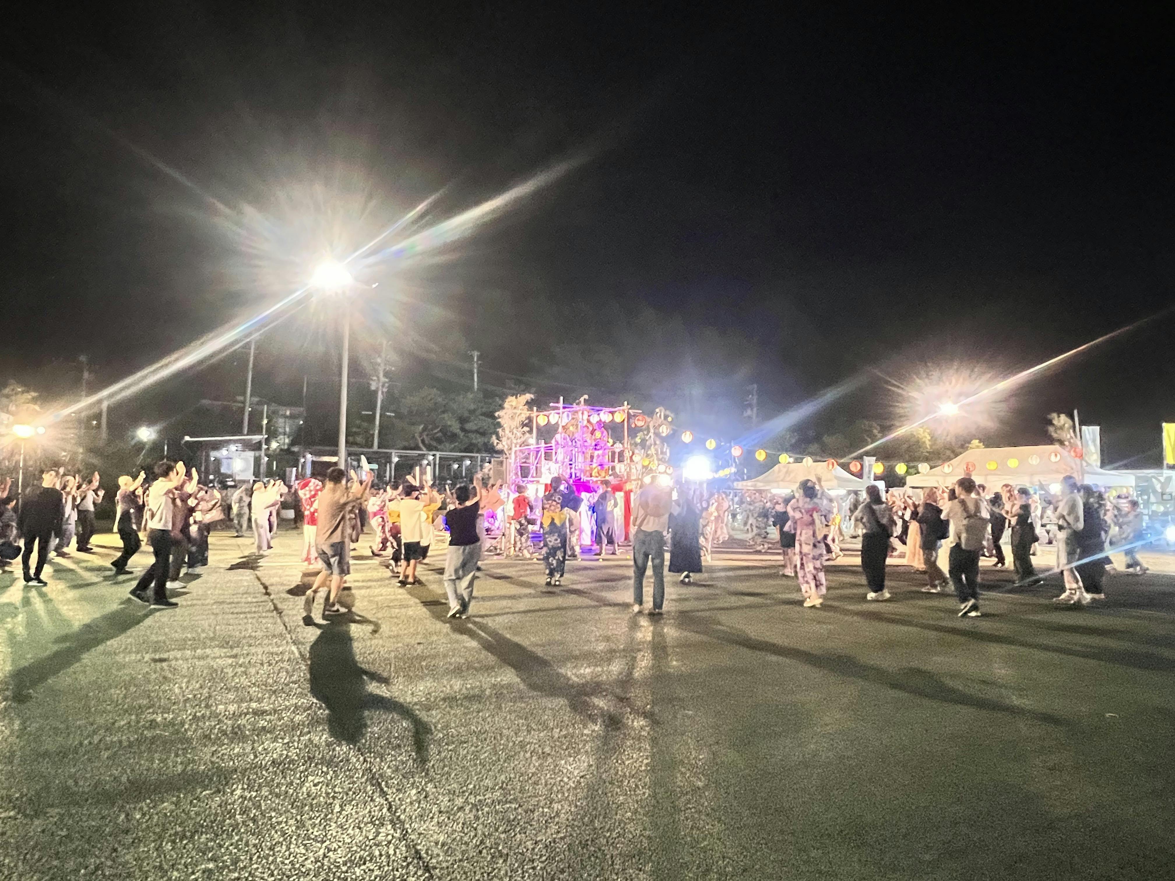旅行中の外国の方もお姿もあり、初めての盆踊りを楽しんでいただいている様子も!