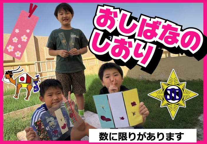 We will make bookmarks from pressed flowers of plants grown at Doha Japanese School and send them to you.