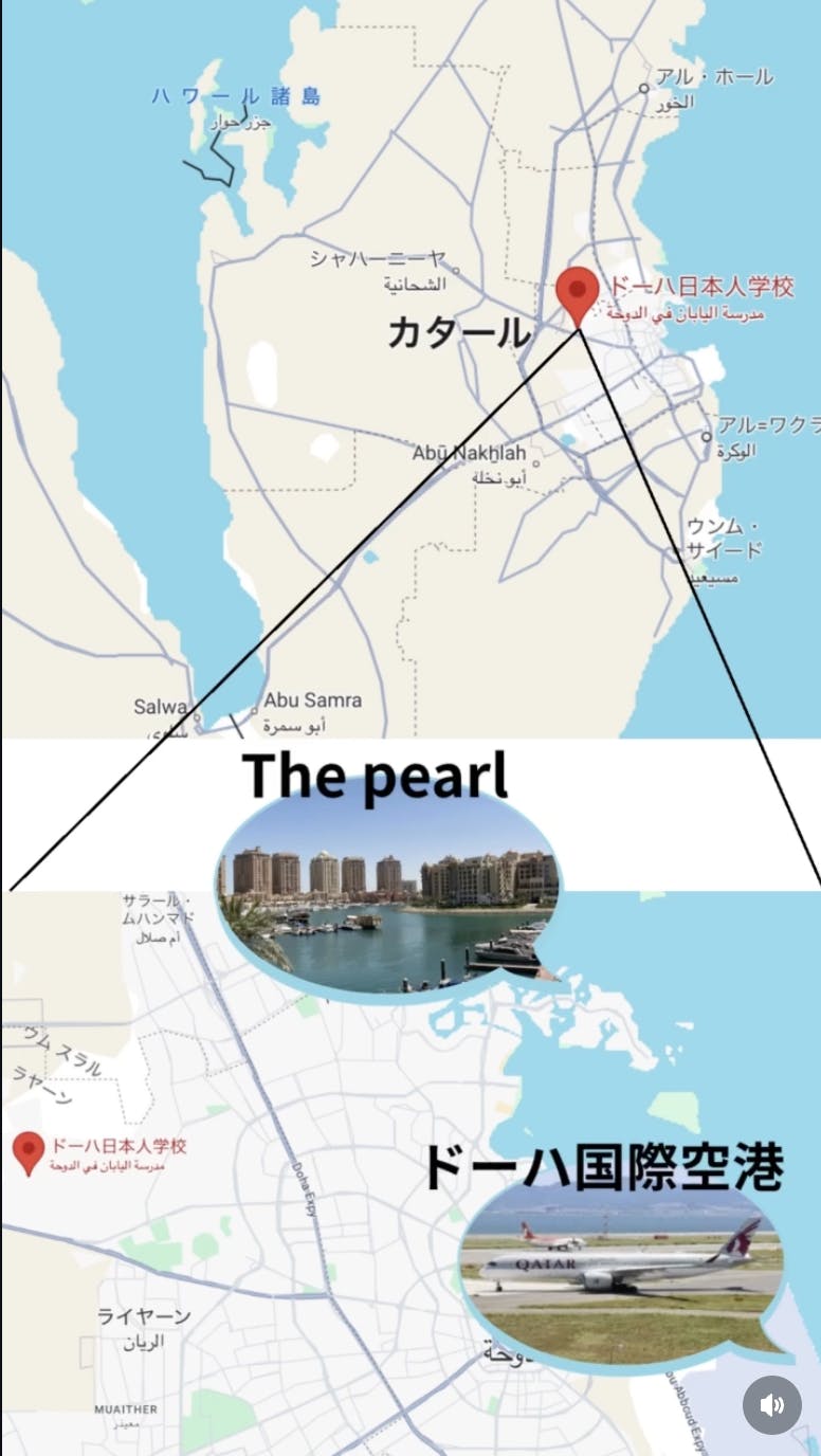 ドーハ日本人学校の近くには、カタールの玄関口ドーハ国際空港や、高級リゾートエリアとして知られているThe Pearlなどがあります。