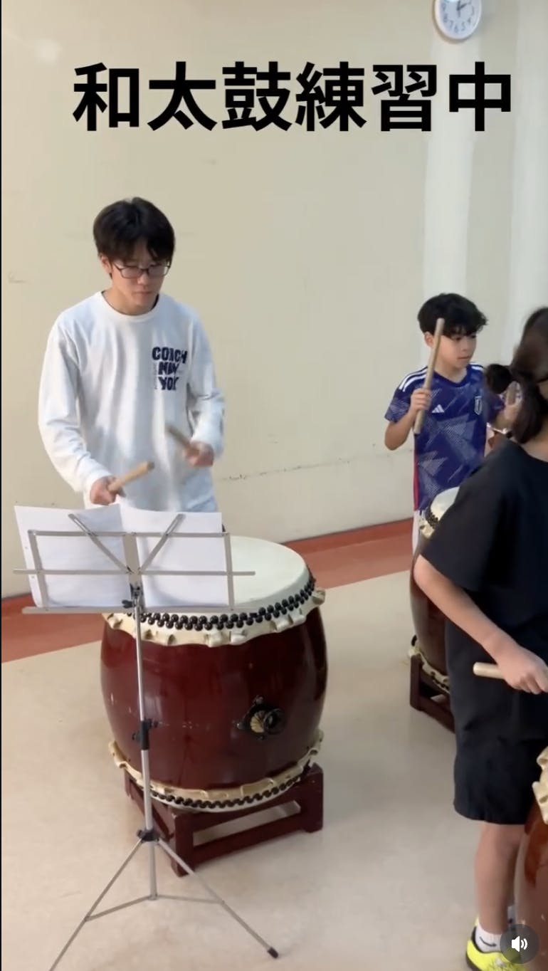 11月の日本人会レクリエーションに向けて和太鼓演奏を練習している様子です。