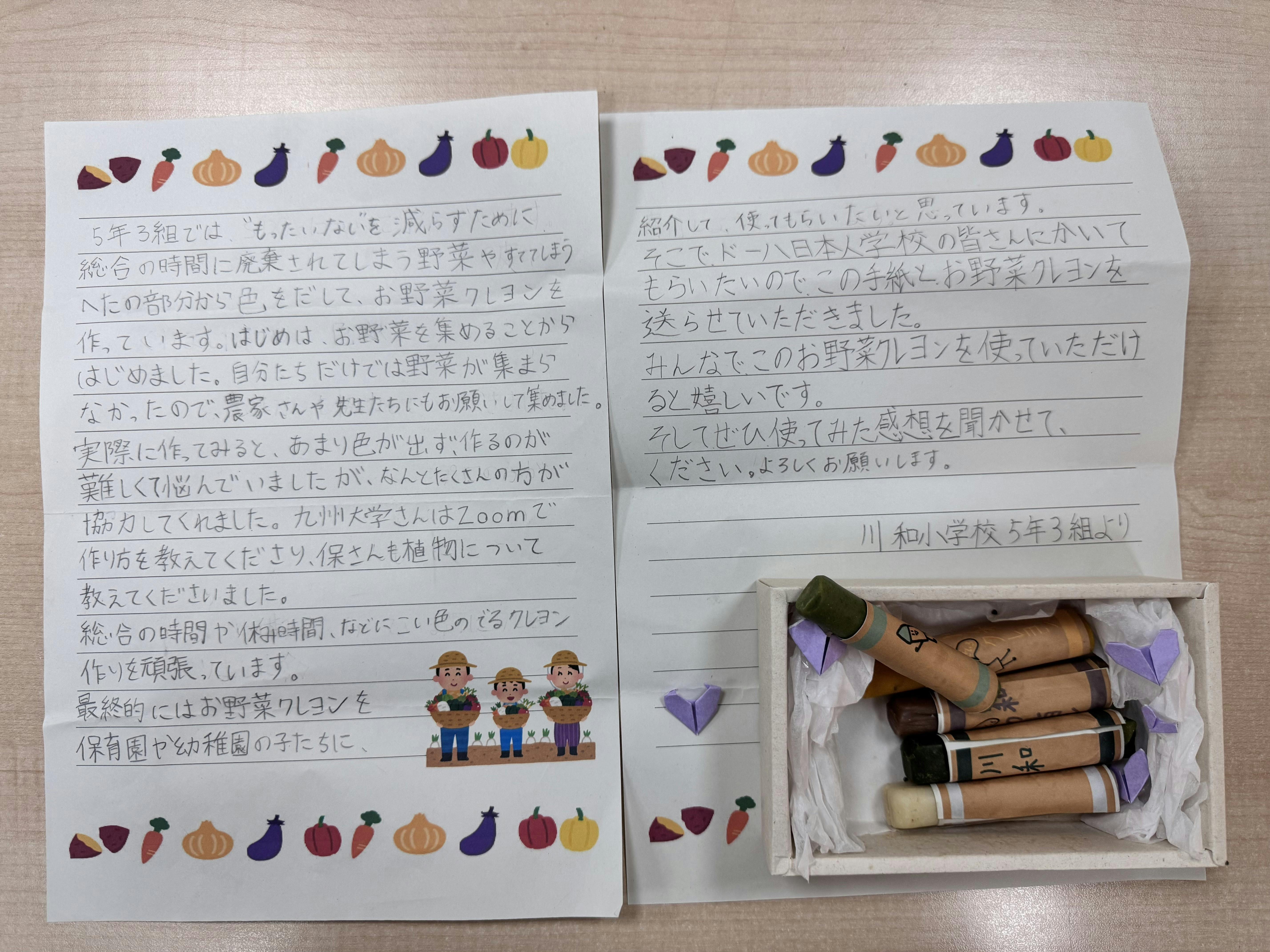 また、川和小学校の皆さんから、野菜クレヨンが届きました。