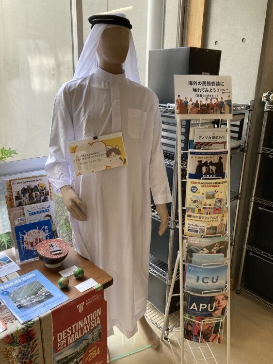 中東のミルクティー(カラックティー)や、カタールの伝統衣装も送り、学校に飾ってもらいました!