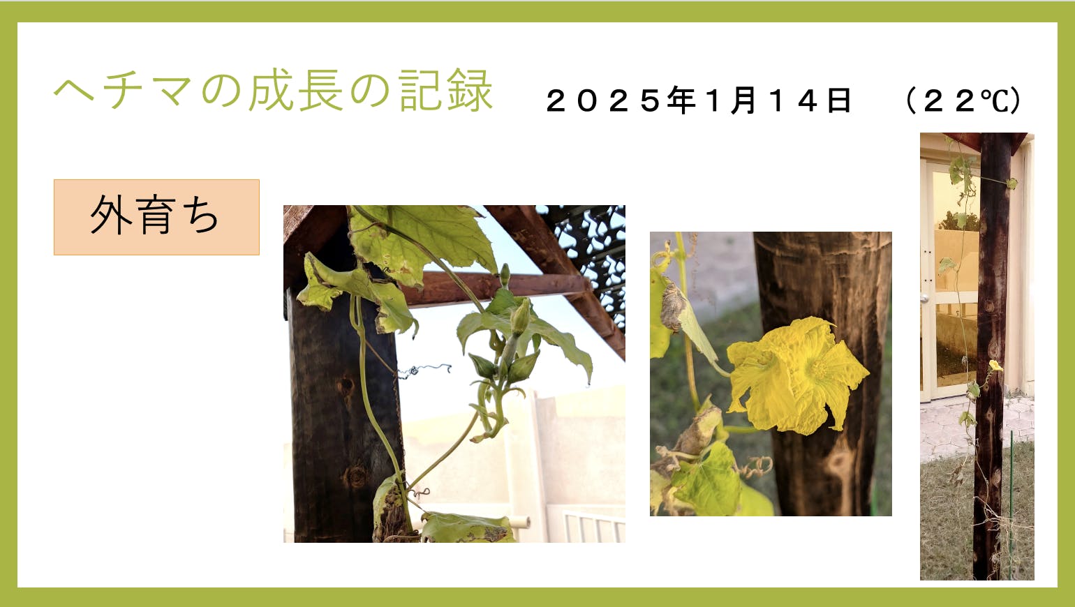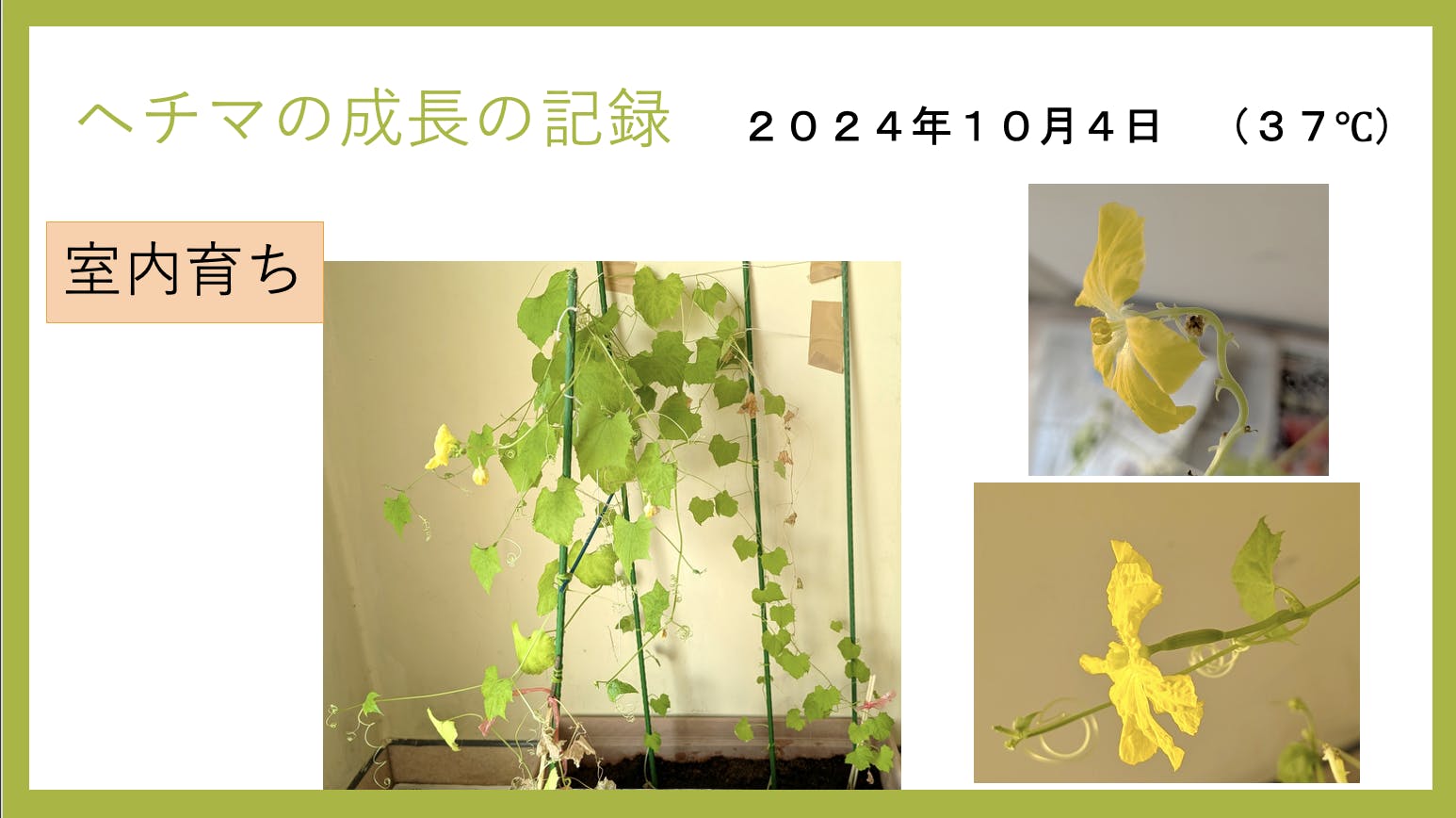3ヶ月後、おくれて外育ちも、お花とめ花がいっきにさきました。