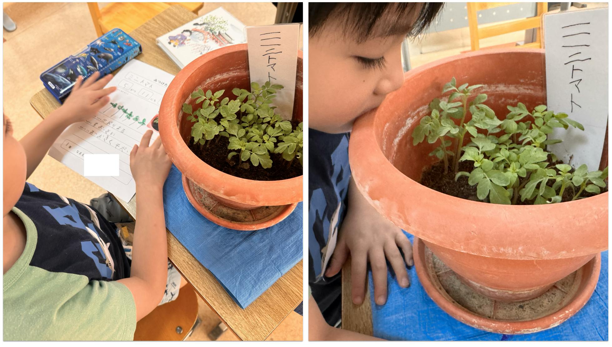 観察カード: 生活の授業で、長い時間をかけて植物を観察して描きました。