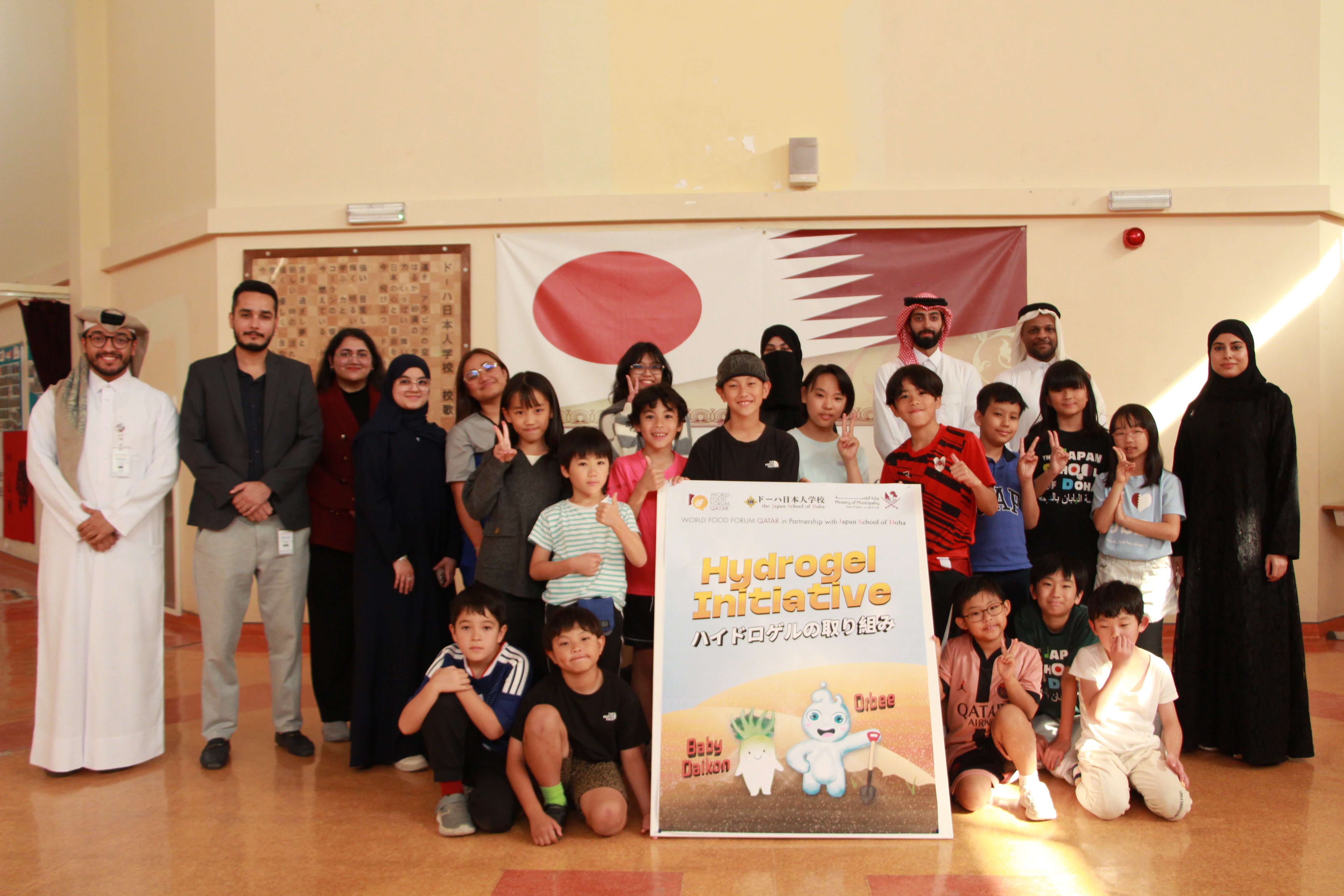 イベントでは、UDSTの研究チームのみなさんが、砂漠を緑にするための最新技術「ハイドロジェル」について教えてくれました。少ない水でも植物が元気に育つ魔法のようなジェルの話に、みんな興味津々!「これを使えば、もっときれいなお花が咲くかも!」と、これからの花壇づくりへの夢がさらに広がりました。