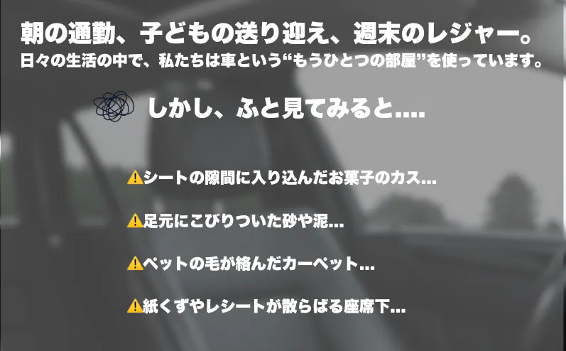 車内清掃は、「吸引力」だけでなく「届くかどうか」がカギです。