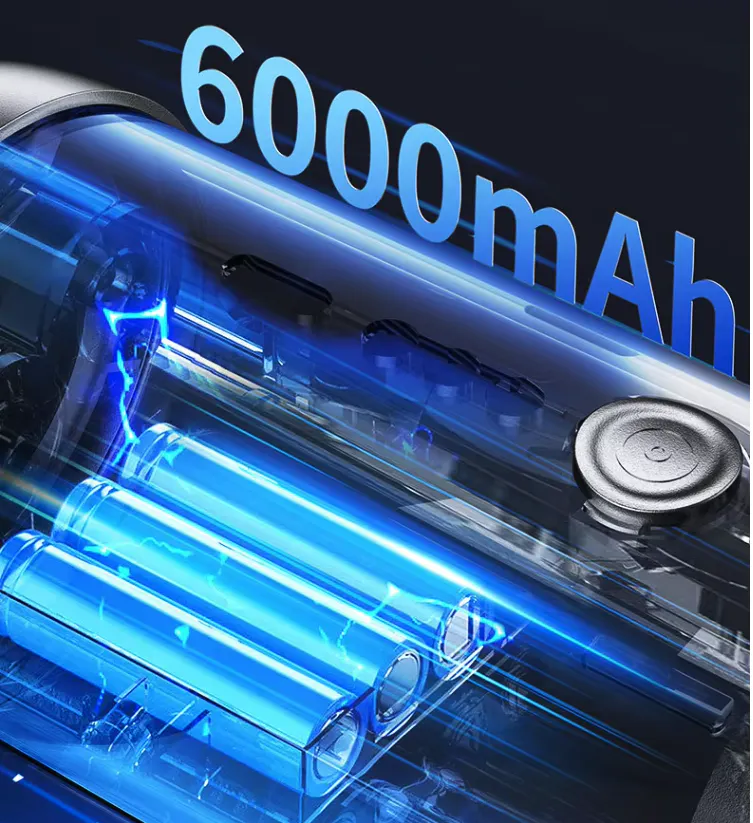6000mAhのバッテリー3時間半の充電でで30分連続稼働可能。
