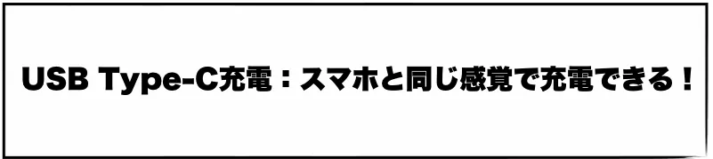 あらゆる機器と接続可能なUSB Type-C対応。フル充電で最大30分連続稼働し、1週間に数回使うなら十分なパワーをキープできます。もちろん乾電池は不要で、エコ&スマート。