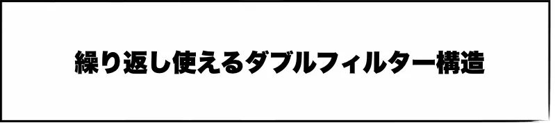 長期利用を可能にする「ダブルウォッシュフィルター」を採用。以下の2層構造で、微細なホコリや花粉、ダニなども逃しません。