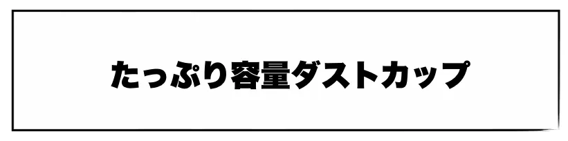 108mlのダストカップ搭載で、小型ながらもゴミ収容力あり。車1台分なら1回の掃除で充分対応でき、途中でゴミを捨てる手間なし。