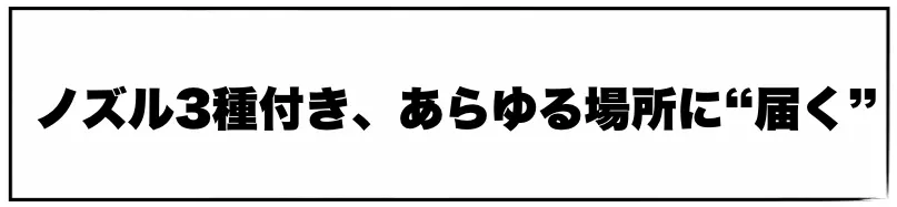 本製品は3種類のノズルで、“死角ゼロ”の掃除が可能です。