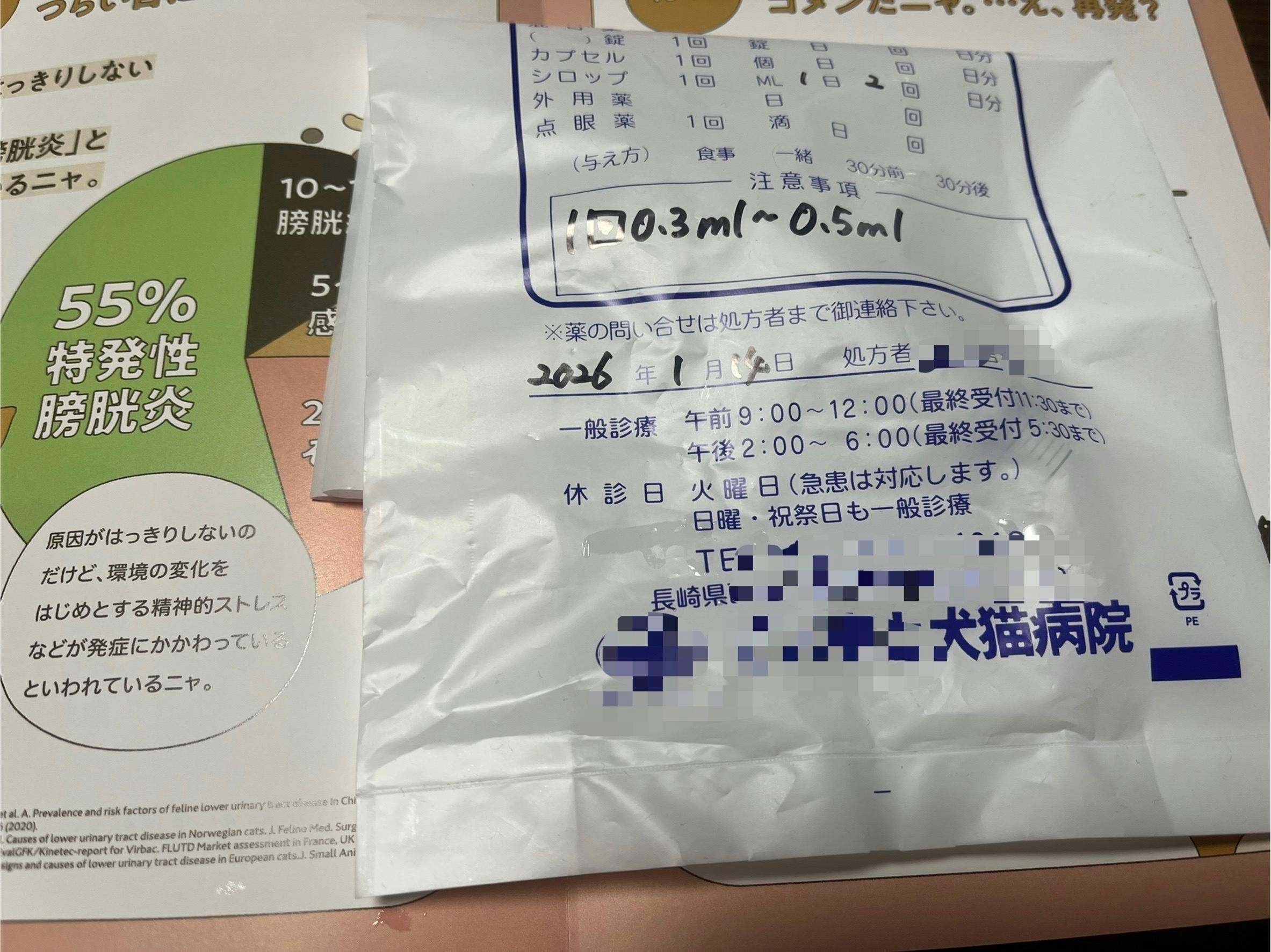 現在はシロップのお薬を1日2回飲ませています。