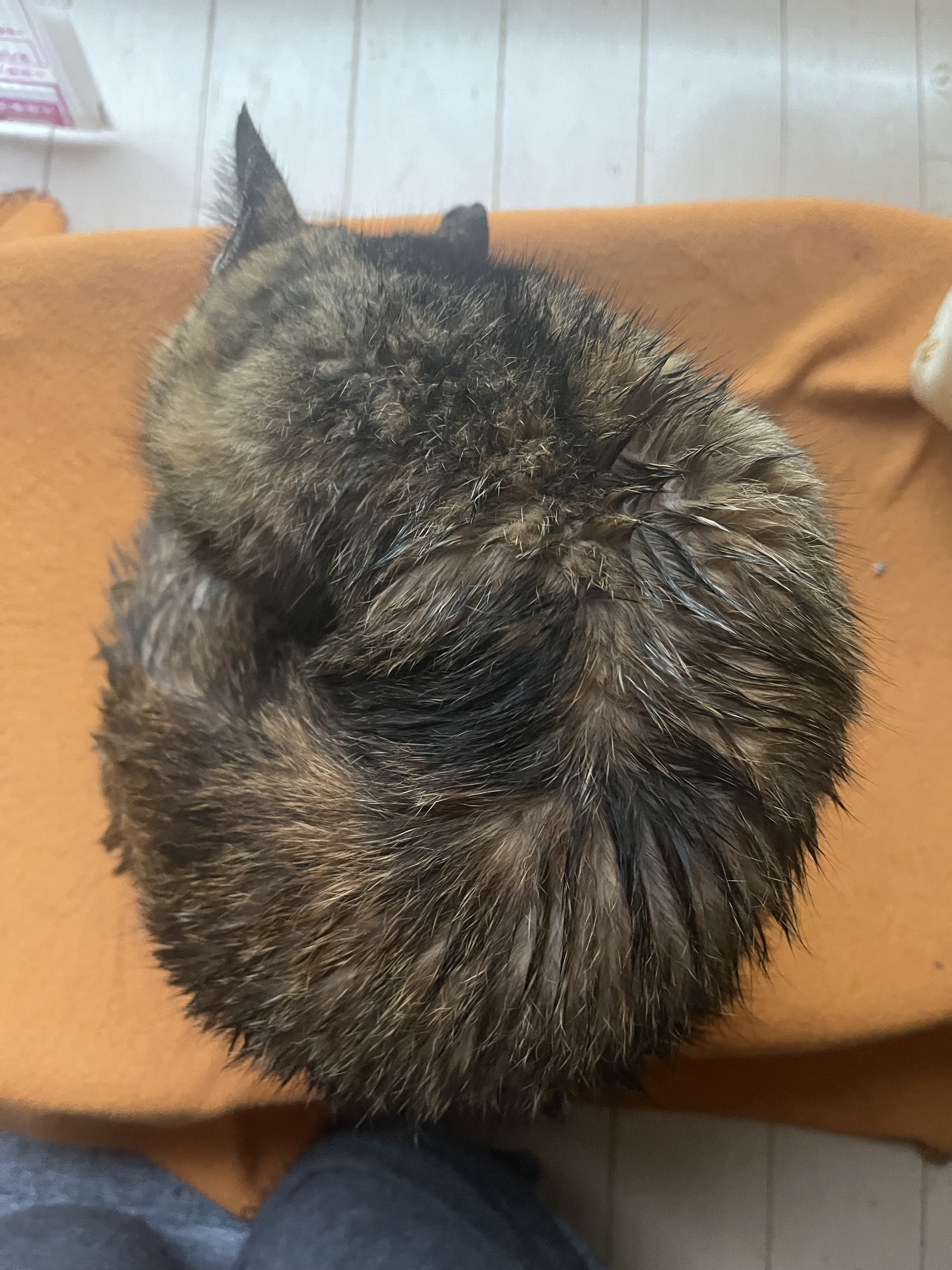 【ご報告】雨に濡れて震えていた猫ちゃんを保護しました。体温も下がっており、このまま保護する予定です。爪切りを行い、ノミ・ダニ駆除も済ませました。現在は暖房とこたつで室内を暖かくしています。ですが、もともとお外で暮らしていた子のため、こたつは怖いようで入ろうとしません。まずは安心できる環境づくりを優先し、ゆっくり慣れてもらえたらと思います。