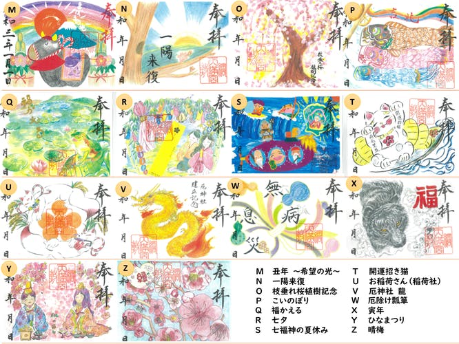 これまでに制作された御朱印の種類は200種類を超え、季節ごとに変わるデザインが多くの方に親しまれています。