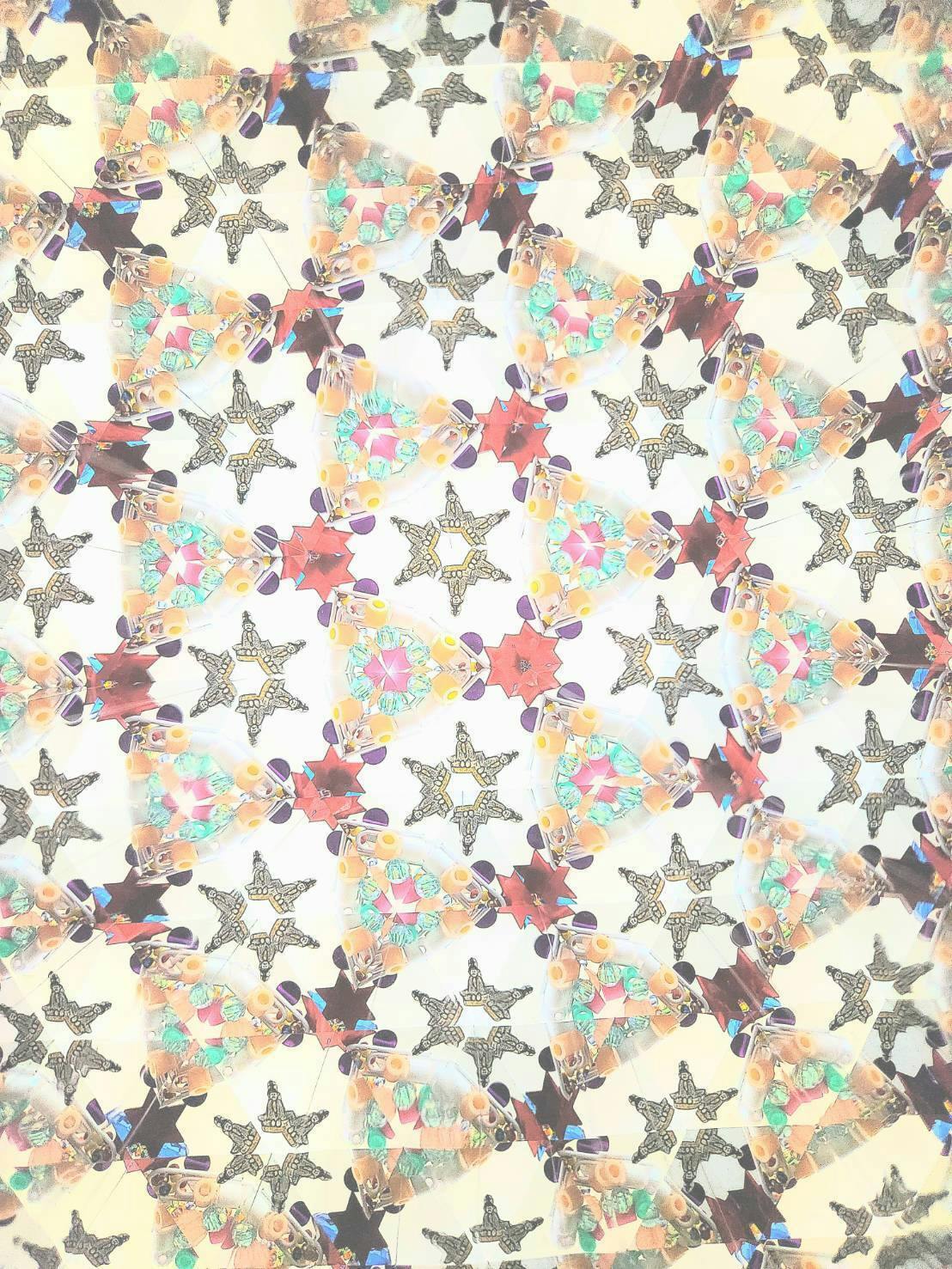 キセキの万華鏡御朱印の図柄を試作しています。天神様が星のような形に連なっていらっしゃいます。
