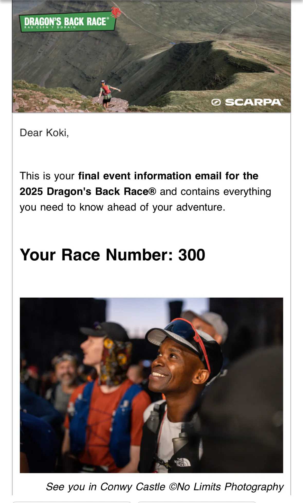 そしていよいよ自分のゼッケンナンバーが判明!今回のレースのNo.は「300」。なんだかとてもキリがいい数字です。