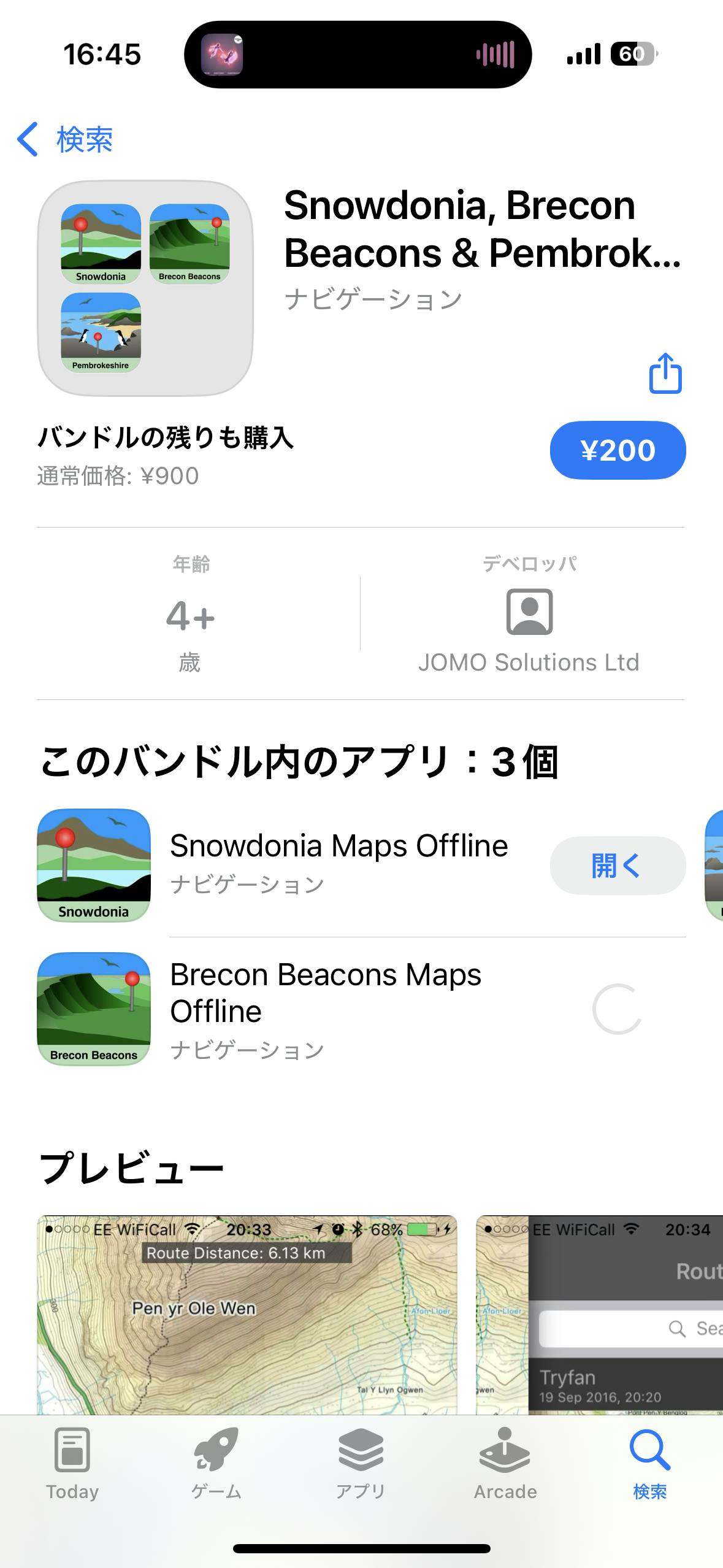 大きな違いはダウンロードしたGPXデータを『どの地図アプリに落とし込むか?』です。今回App Storeでウェールズのマップを検索したところOfflineで使用できそうなものがヒット。1つ300円と有料ですが、レース中のナビゲーションのストレスを減らすため、安全管理のためを考えれば安いものです。