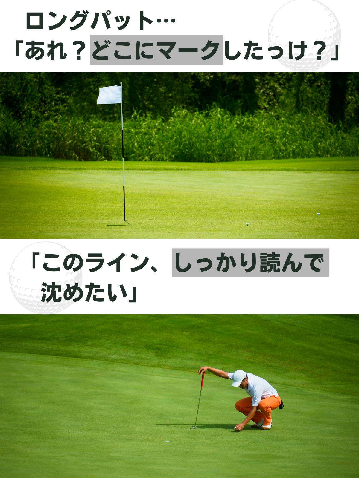 A. ロングパットや反対側からラインを読むとき、自分のマークがどこにあるか見えにくくなることがあります。