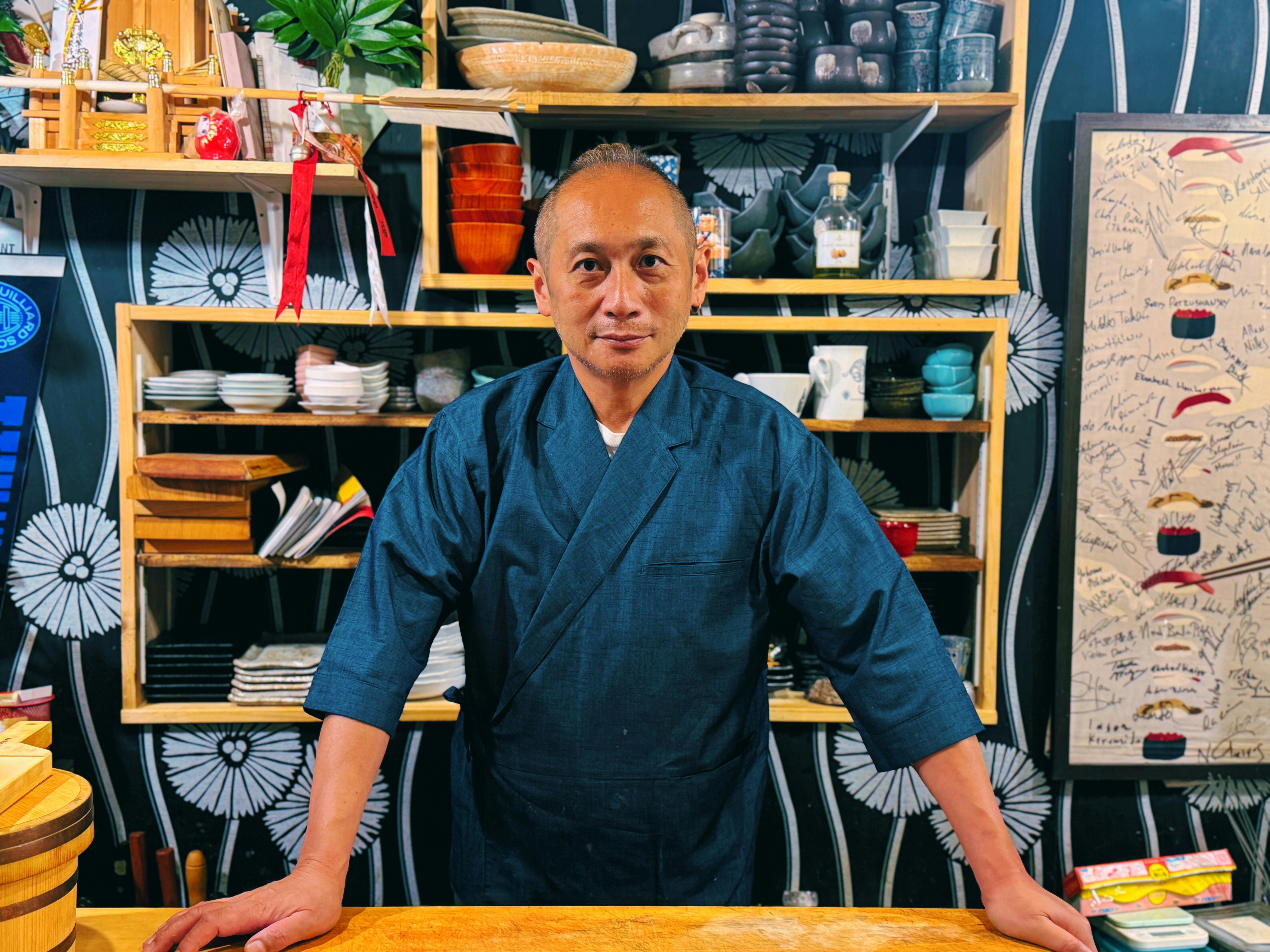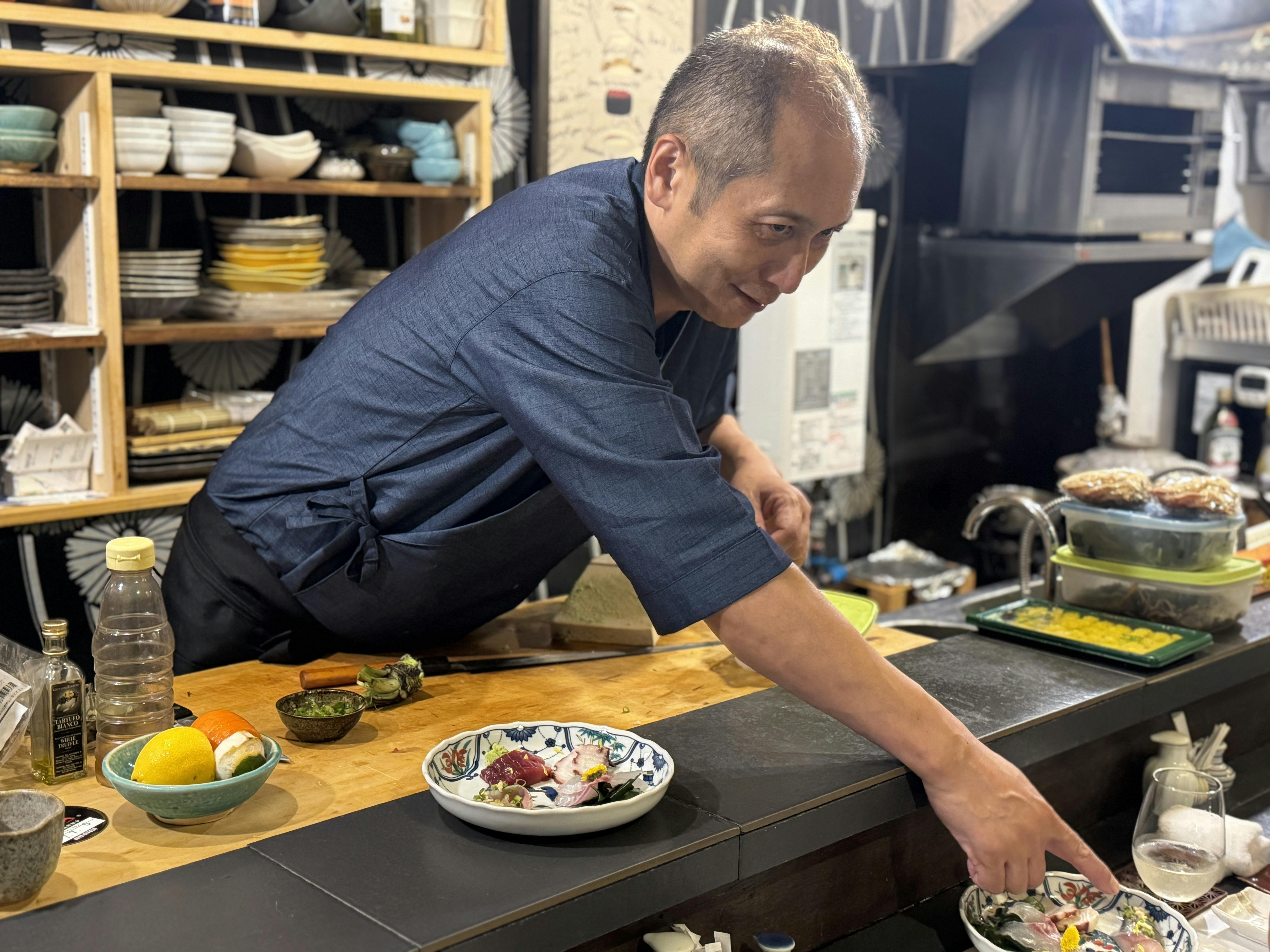 ですが残り約3ヶ月の間にきっと新天地が見つかると信じて移転先探しを続けております。お客様の質問に答えながらネタの説明をする大将