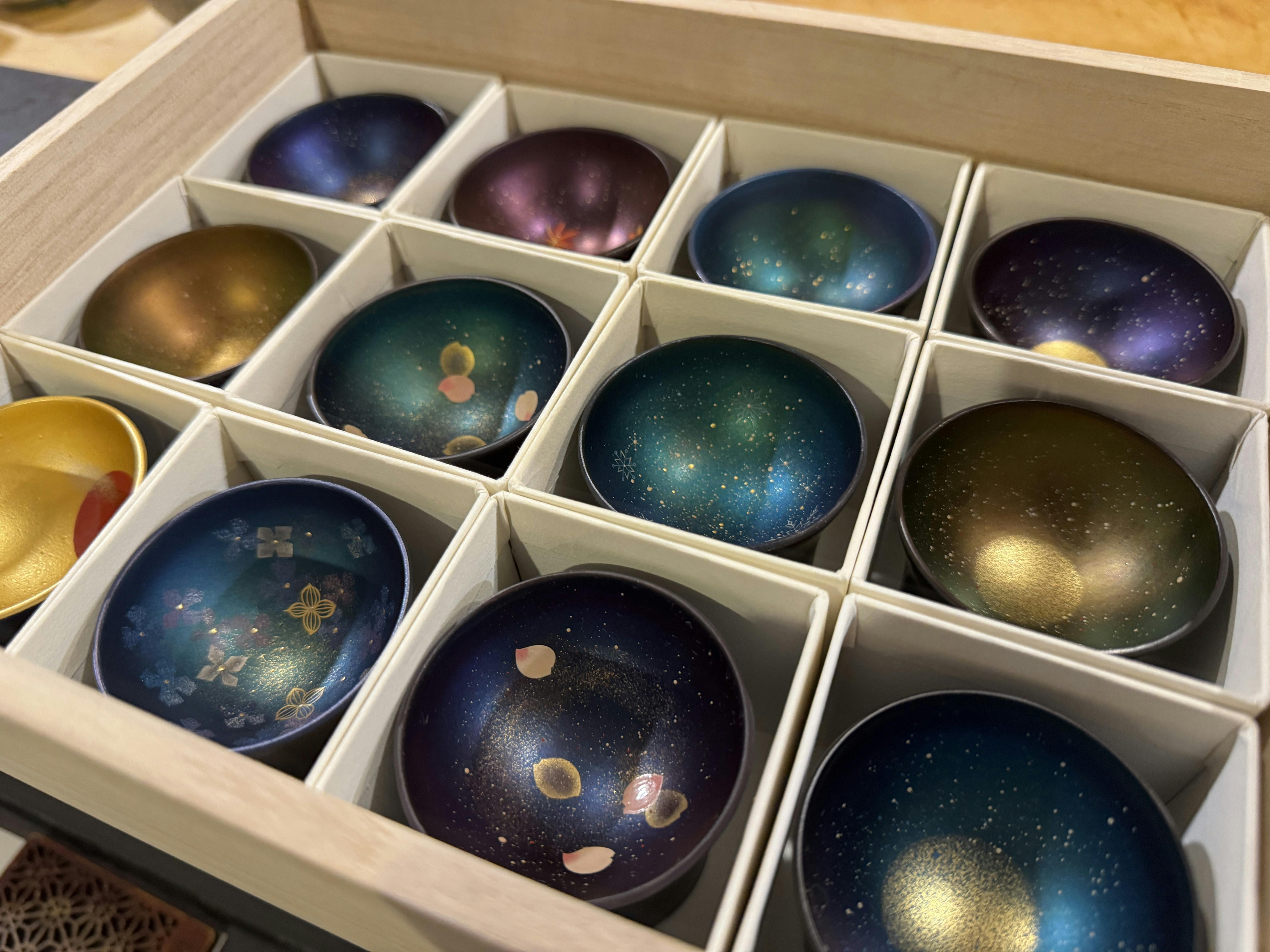 そして今回のクラウドファンディングでは佐藤さんの作品である、新潟県燕市のステンレス製の盃に蒔絵で絵を施した作品である【宙Cocoro】、および木製スプーンに蒔絵を施した【蒔絵スプーン】をなんと特別に銀座さいしょ限定モデルで作成していただきました!それがこちら↓