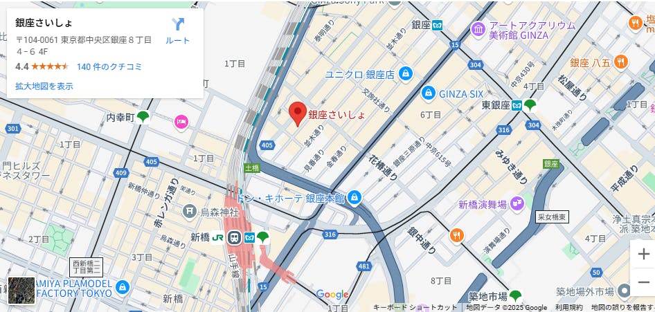 現在の銀座さいしょの位置。JR新橋駅や東京メトロ銀座駅等が近く利便性が非常に良い私が入居したこの時点では具体的に何年後かまでは確定しておらず、1~2年で決まるということはないけど5〜6年も先でも無いよ、と言ったような感じでした。