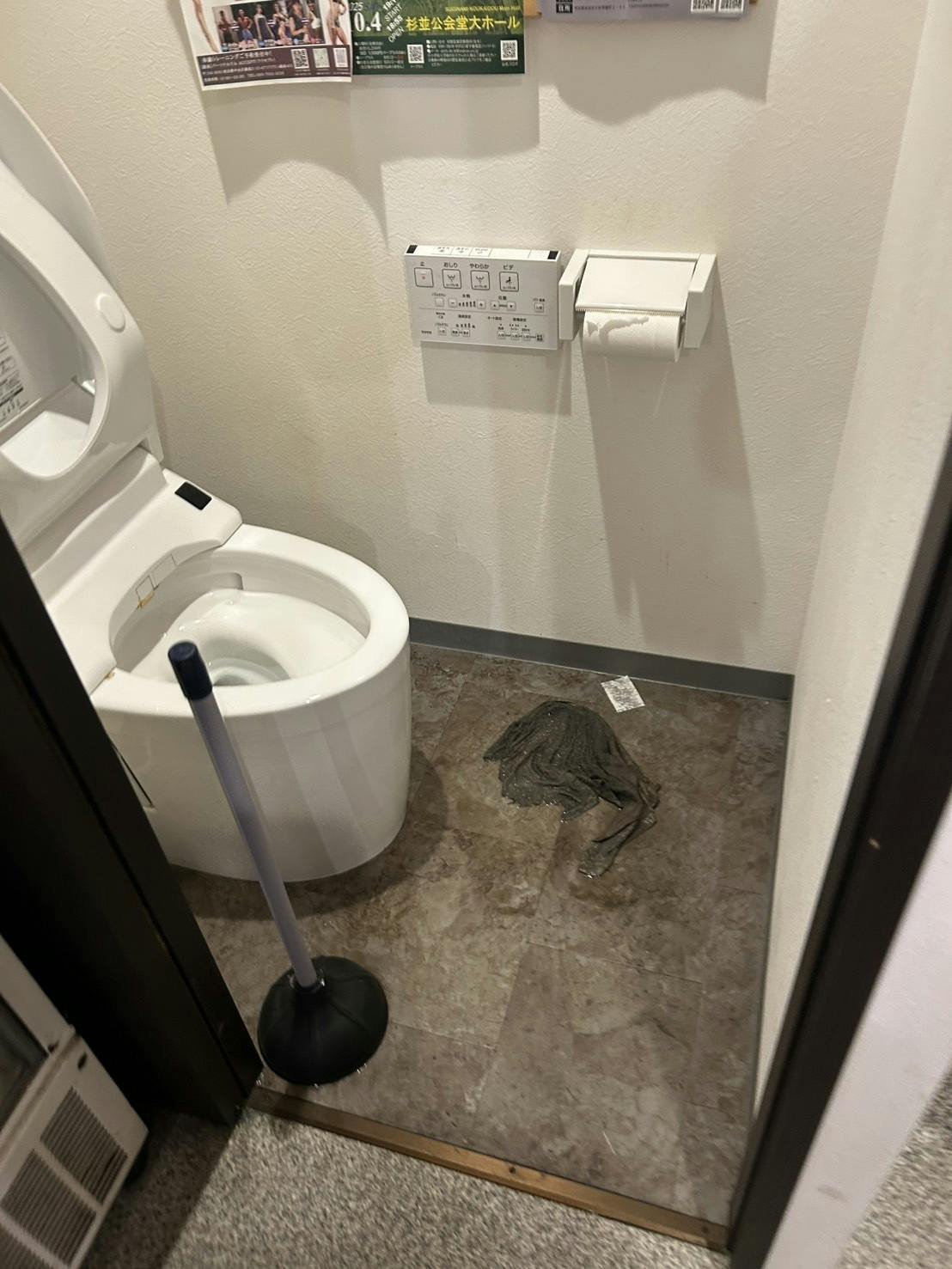 既にFacebook等では公開しておりますが、木曜日の朝来るとトイレの水が流れずに詰まるという事件が発生。