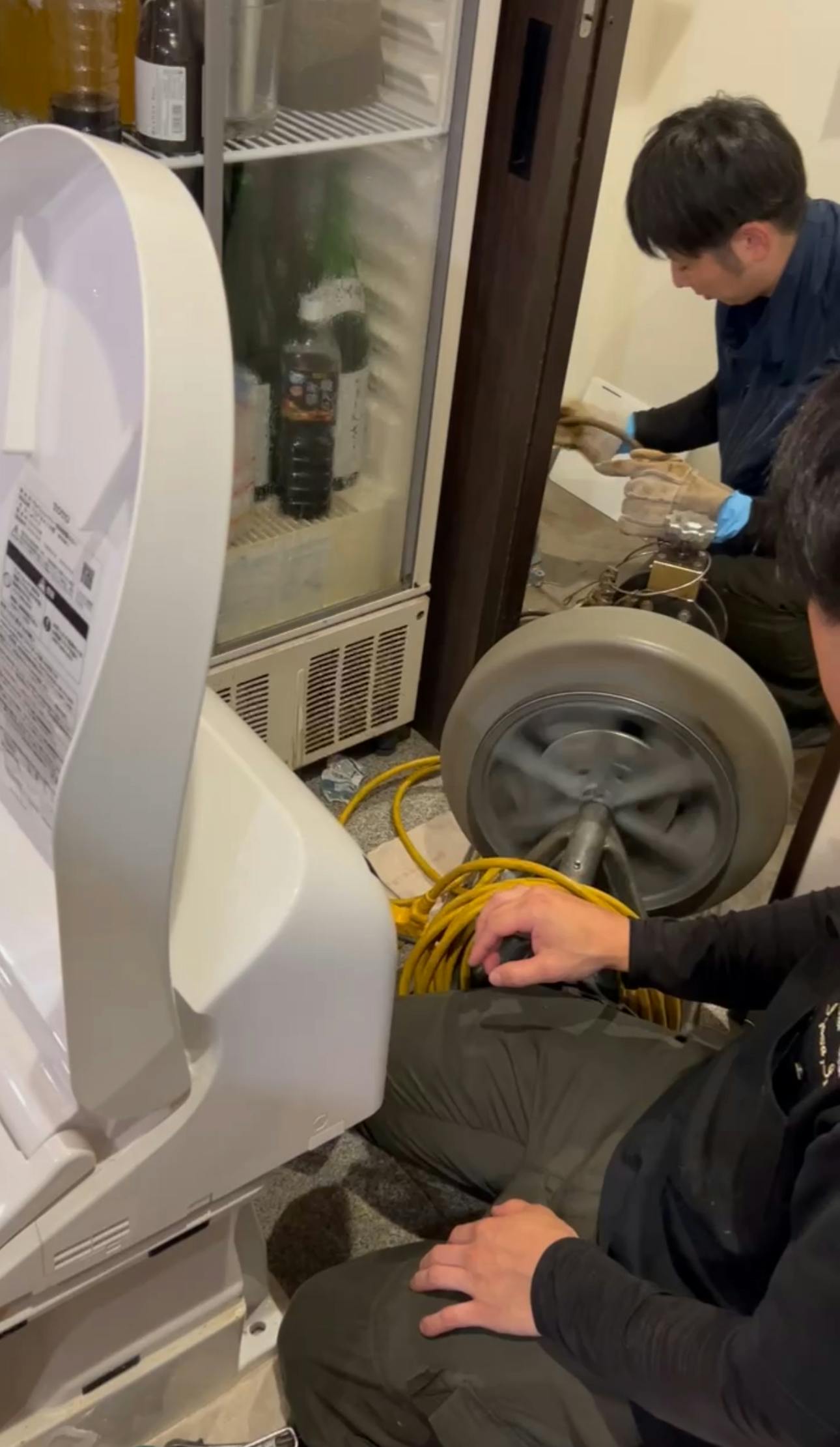 当店は構造的にシンクとトイレの配管が合流してから流れるようになっており、繋がっているためシンクの水も流れず洗い物や仕込みもできない状況に。