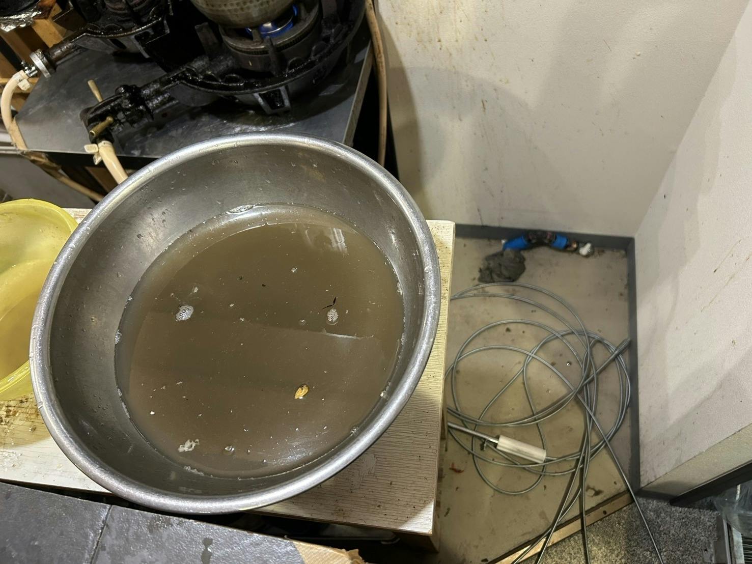 最終的には別のパイプからも溢れて厨房が水浸しになるという大惨事になってしまいました。