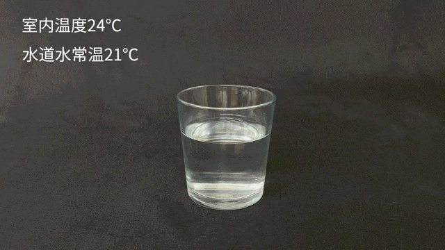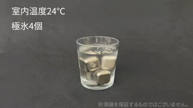 水に極氷を入れてしっかりステアして冷やし、その後どのくらい冷たさが持続するのかをテストします。