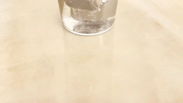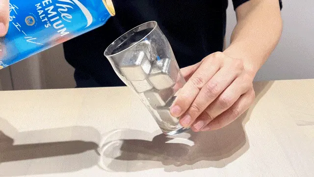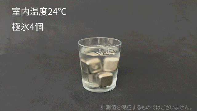 その常温水に冷凍庫で2時間冷やした【極氷】を4つ入れ
