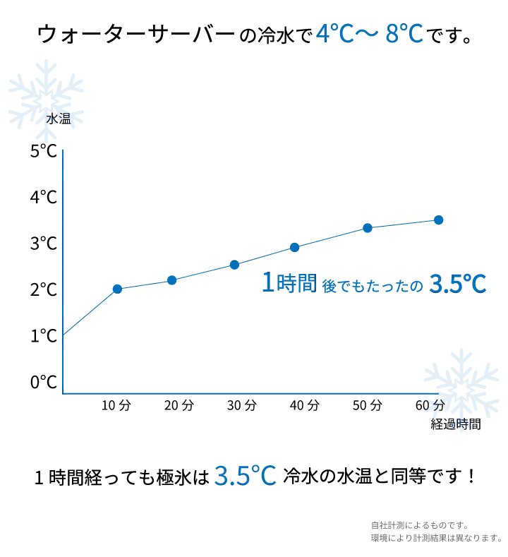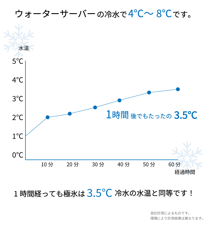 1時間経過後も4℃以下の冷たい温度を保つのが極氷です!