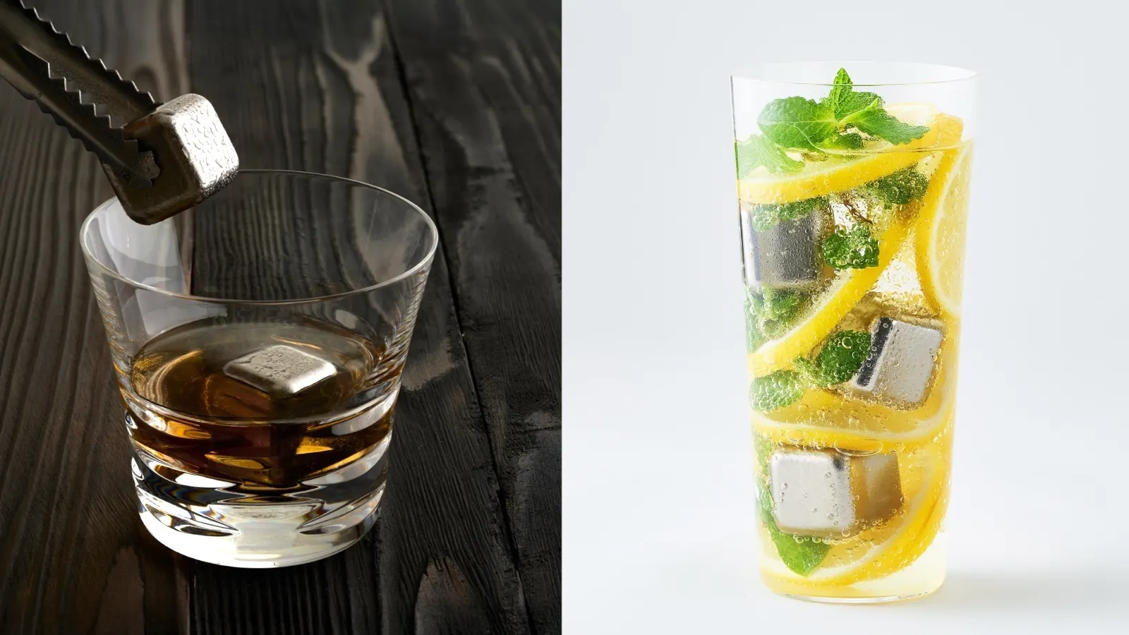 プラスチックやステンレス製では冷蔵庫の匂い移りや耐久性に弱点があり、石を使った氷などでも冷却力には物足りなさがあります。