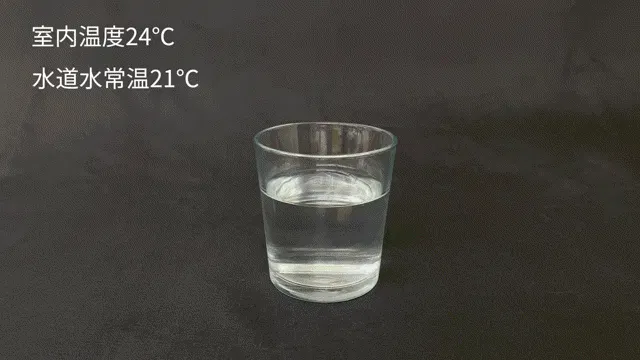 室内温度は24℃ 常温水道水を計測すると水温は21℃